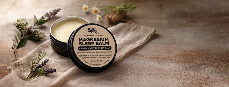 Small-batch, all-natural magnesium balm, handcrafted to help you unwind, relax body, mind, and spirit, and drift into deep sleep.